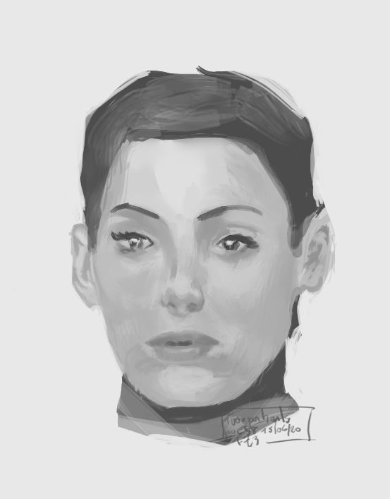 J'aime bien ton portrait, tu as un peu vieilli le modèle. Elle n'est pas assez en perspective.