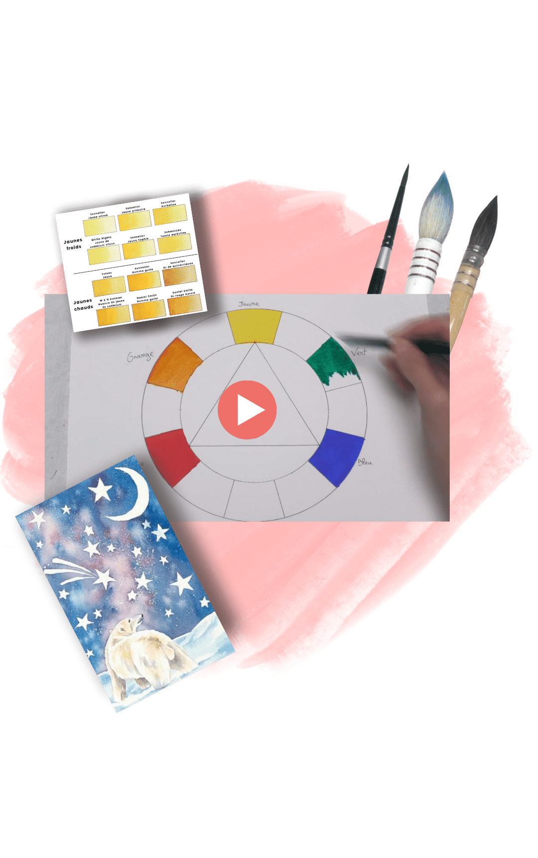 ✓ Tu mélanges les couleurs primaires à l’aquarelle pour obtenir toutes les teintes que tu souhaites et créer ta propre palette de couleurs.
