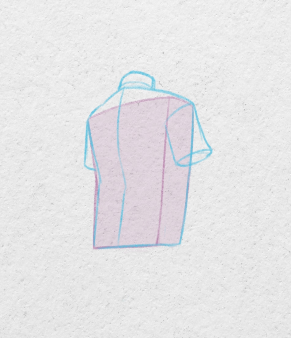 Dessiner la silhouette du personnage avec une forme simple. Rectangulaire pour un dos masculin et plutôt en sablier pour un dos féminin.