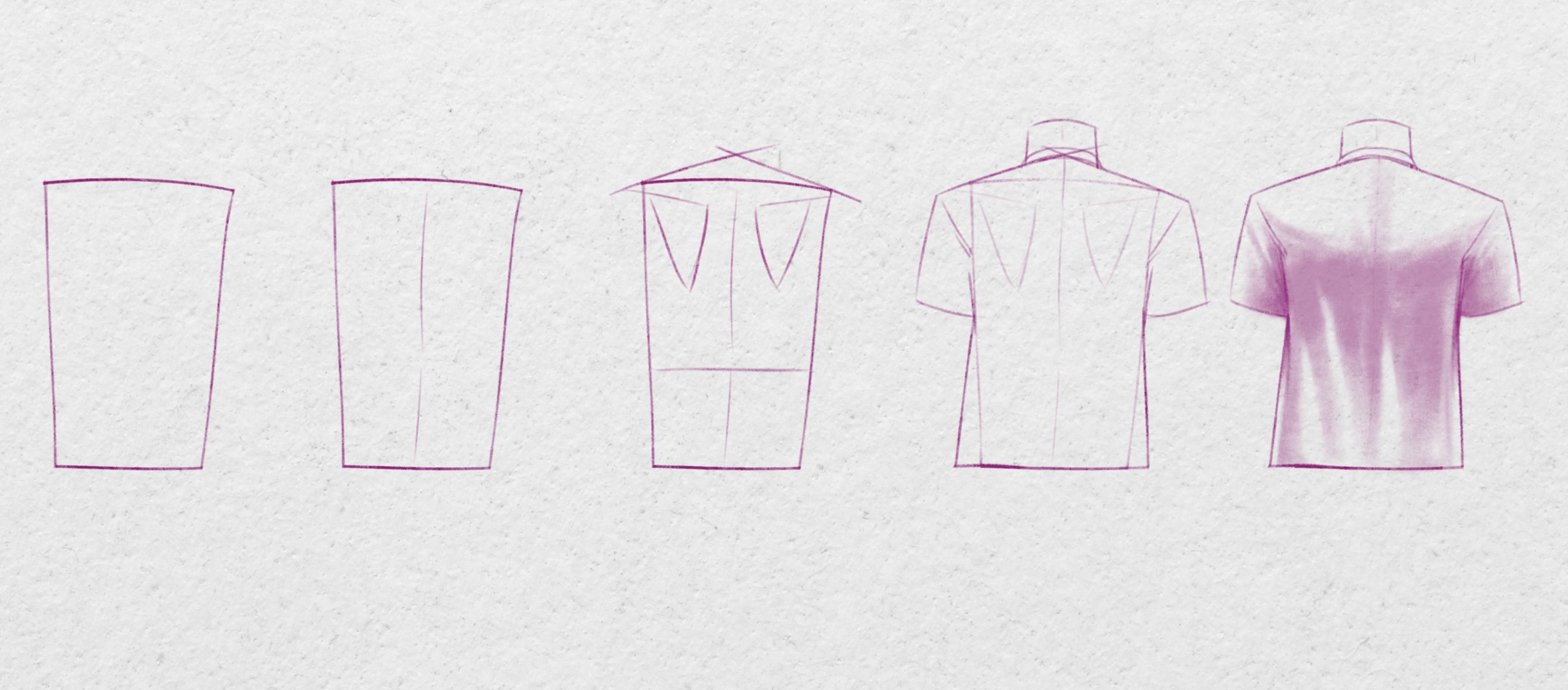 - Gestion des os et des ombrages : Pour un personnage dos nu ou avec un haut très près du corps, représentez les formes des os et muscles visibles aux travers du vêtement. Puis, ombrez pour donner du volume.