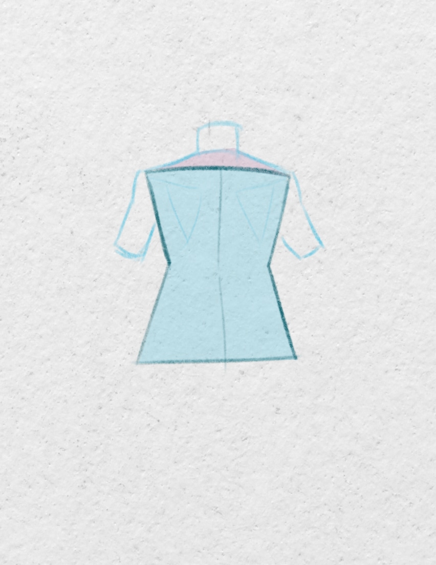Vous pouvez commencer à placer le cou et ajouter les détails des vêtements. Laissez une petite marge entre la peau et le tissu.
